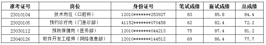 根据《天津医科大学总医院空港医院2022年派遣制员工补充招聘公告》,依据招聘总成绩由高到低的次序,按照实际招聘岗位人数等额进入体检环节(如总成绩相同以面试成绩高者确定参加体检人员)。体检费用由应聘人员自理。现将进入体检人员名单及体检有关事项公布如下: