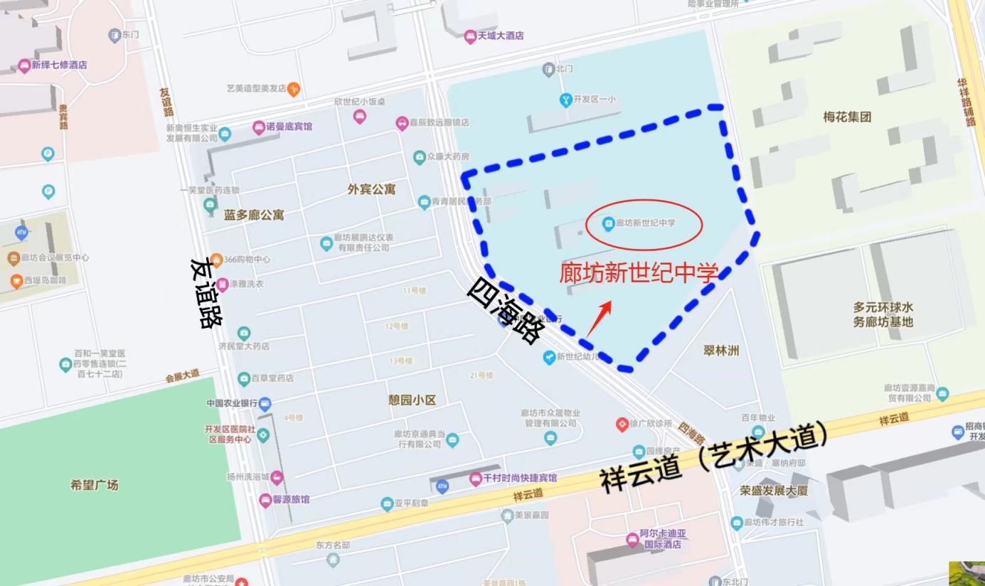 2024年廊坊开发区中学编制教师选聘笔试考试将于3月24日举行,为方便广大考生提前了解考点所处位置,现公布考点考场分布示意图,请提前确认到达考点的最佳交通路线,计算好途中所需时间。
