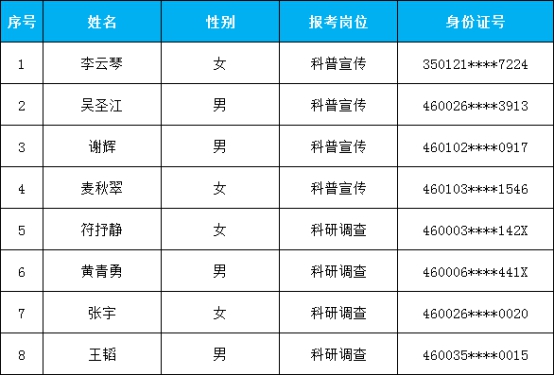 海南直聘人力资源有限公司向社会公开招聘2名工作人员派遣至三沙市海洋保护区管理局工作,经报名、资格初审等程序,现将资格审核通过人员名单和面试事项等公告如下: