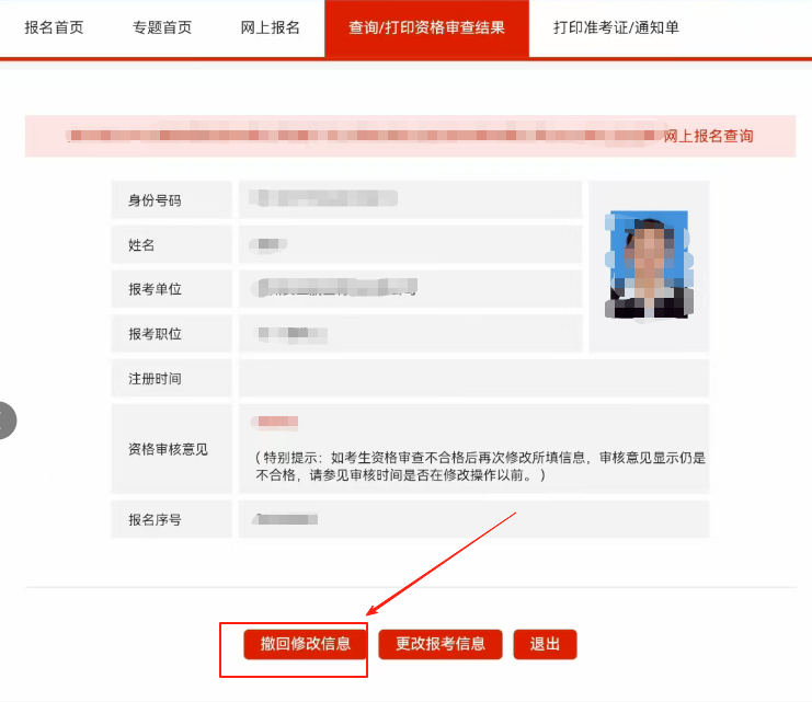 3、点击“撤回修改信息”