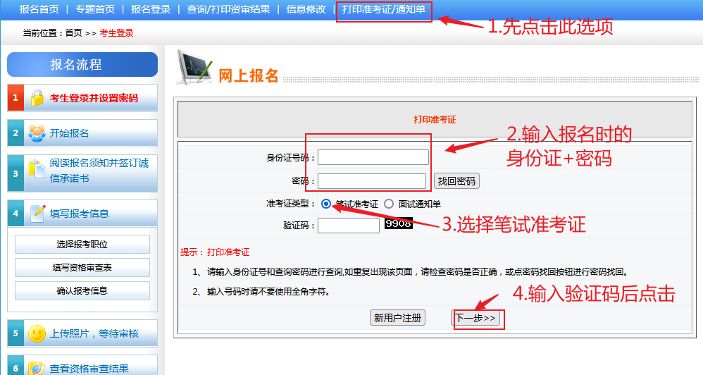 笔试准考证打印教程。