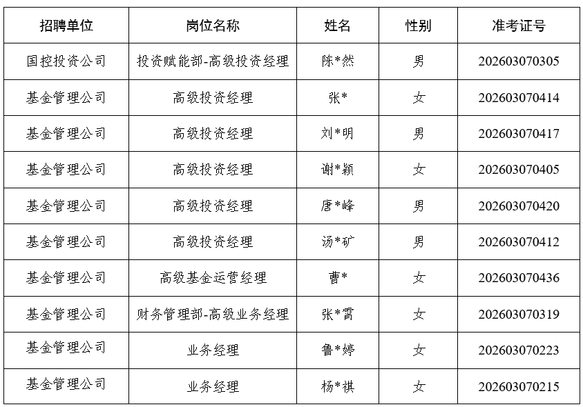 普众互联网上报名系统根据《安徽国控投资有限公司及所属企业2026年上半年公开招聘公告》规定,经报名、资格审查、笔试、面试等环节拟确定体检考察人员,现予以公告。