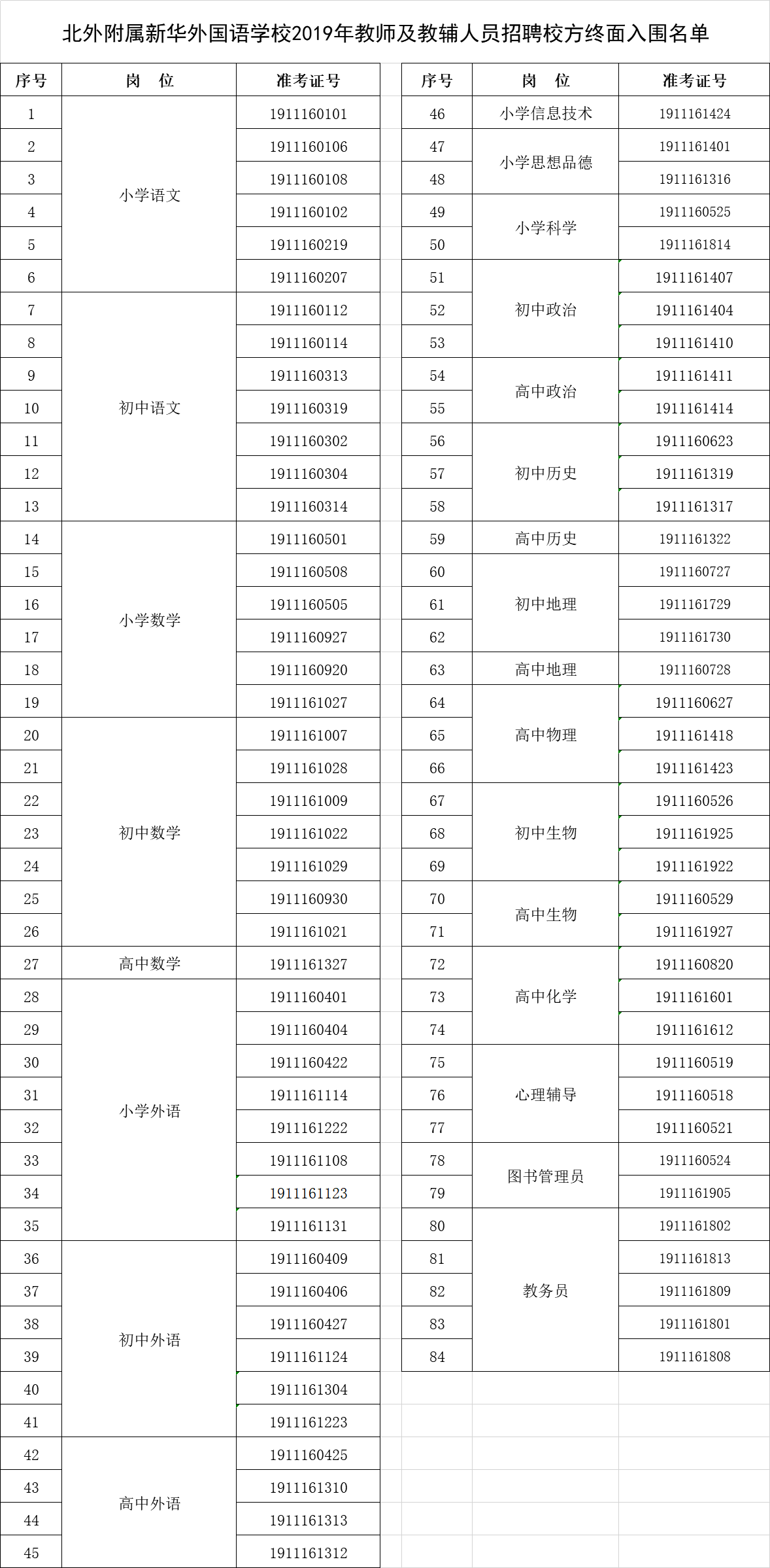 普众互联网上报名系统北外附属新华外国语学校关于2019年教师及教辅人员招聘校方终面入围名单公示的通知