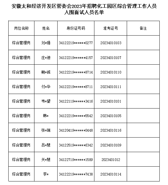 普众互联网上报名系统根据《安徽太和经济开发区管委会2023年招聘化工园区综合管理工作人员的公告》规定和要求,为了确保公开招聘面试工作的顺利进行,现就具体事项通知如下: